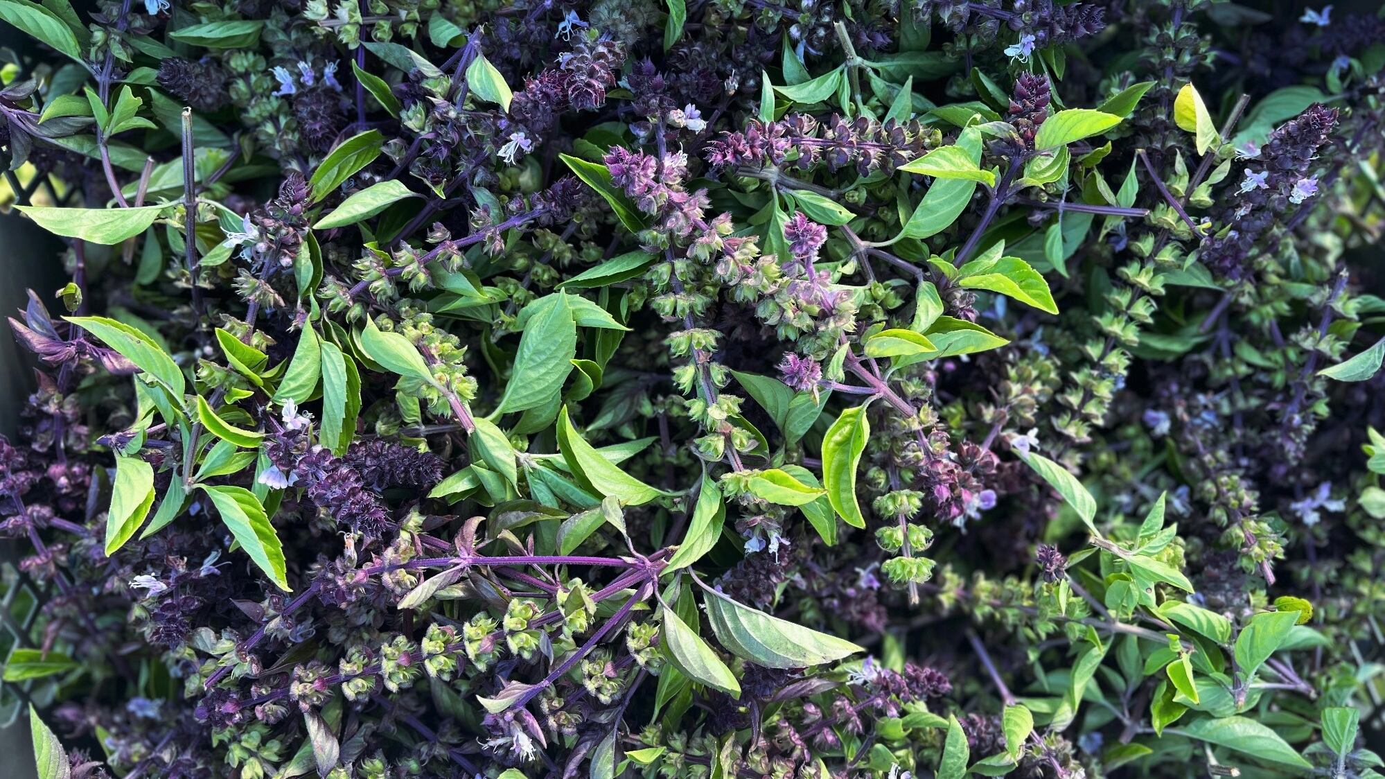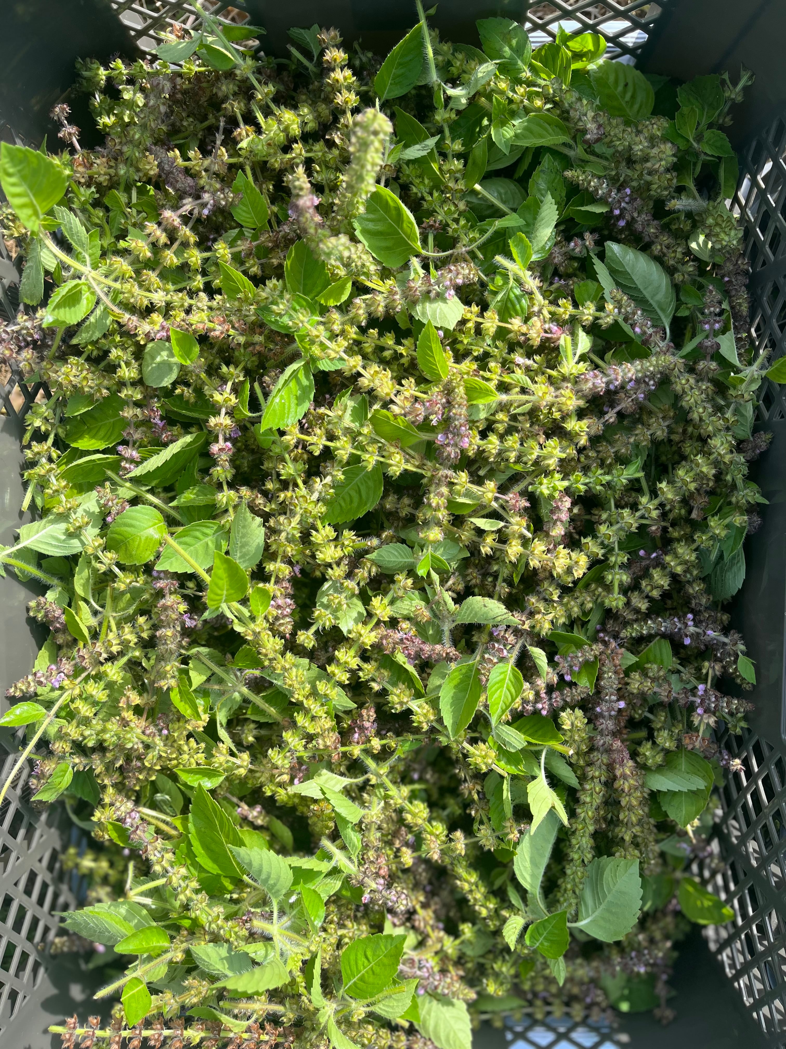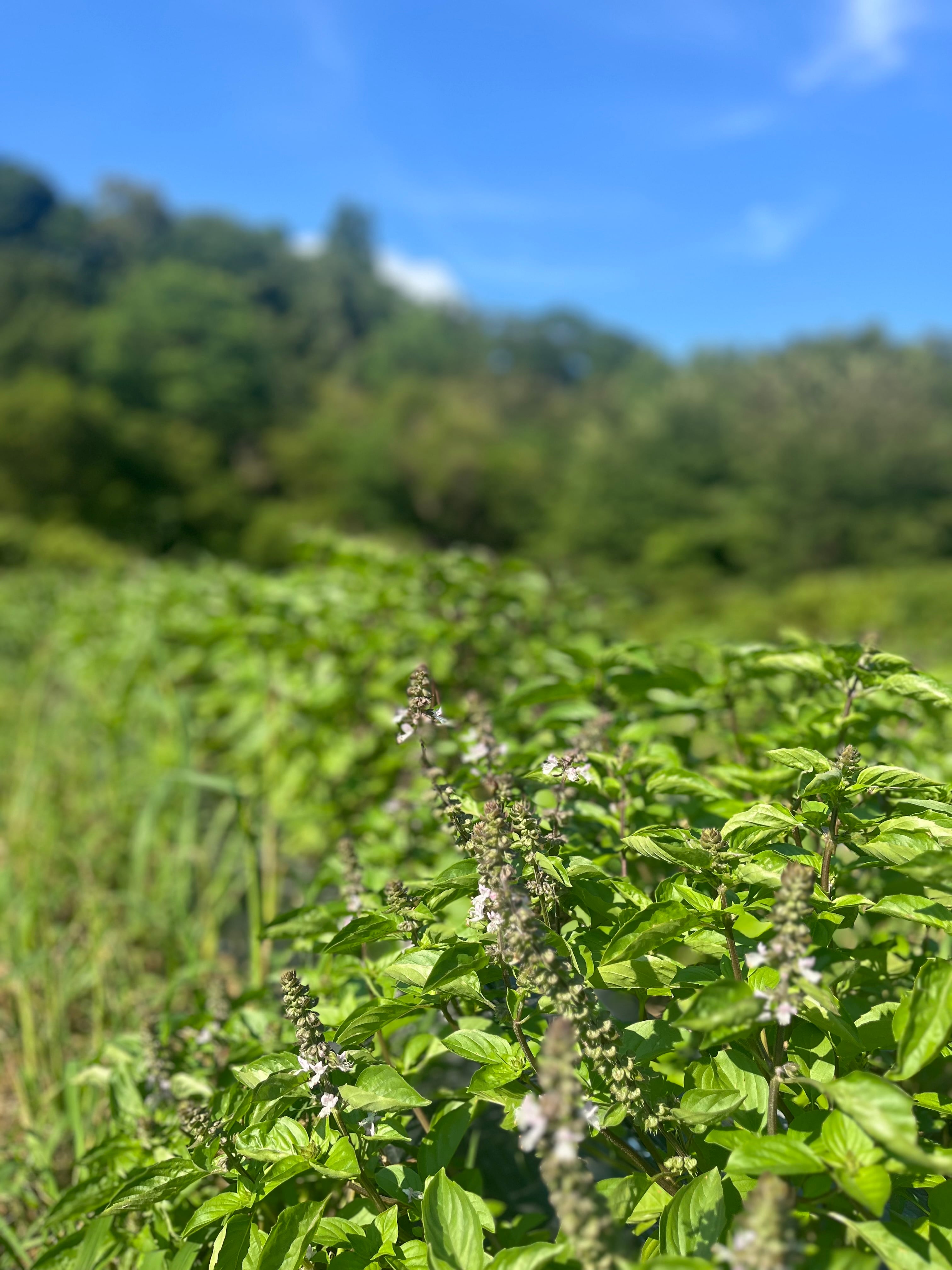 北海道北斗市文月の畑にて無農薬、無化学肥料で栽培されたシナモンバジル、ホーリーバジル、ライムバジルの3種類を手摘みで収穫、丁寧に乾燥・ブレンドし、どなたでも気軽に楽しめるようティーバッグに詰め込みました。